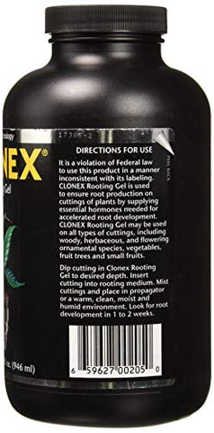 Clonex Rooting Gel can be used on all types of cuttings including woody, herbaceous, flowering ornamental species, vegetables, fruit trees, and small fruits. It contains a full spectrum of mineral nutrients and trace elements to nourish the young roots during their important formative stages. Clonex is a high performance, water-based, rooting compound.