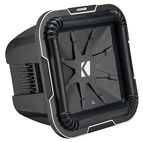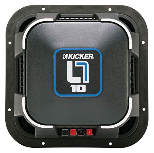 41L7104 10" Q-Class L7 Subwoofer w/ Dual 4-Ohm Voice Coils The L7 stands alone as the most unique subwoofer on the market with a cone shape that is exclusively designed to produce more output. Square Matters A KICKER original their square subwoofers deliver 20% more surface area than a comparable circular sub. A bigger cone moves more air so you get more sound! Massive Motor Extreme power handling needs a motor worthy of the KICKER name. Oversized magnets and an aluminum voice coil allow every drop of power to get from the sub to your ears. Keep it Cool The Uniplate is a KICKER original combining the pole piece and back plate as a single seamless unit to pull damaging heat away from the sub. With heat management this advanced you get the bass you crave for as long as you crave it. Lean in the Corners Kicker's patented Santoprene corners allow your KICKER subs to play smooth distortion-free music at any volume level. Strong Suspension Kicker's Blue Lace spider and ribbed surround work together to give you the best suspension for your L7. You get unparalleled accuracy and volume to feel every note - every time. The New L7 The KICKER L7 Subwoofer again reaches new heights in technology and design capturing the imaginations of 2015 CES Innovation Award judges and solidifying itself as the crown jewel among industry subwoofers. For more than a decade KICKERs square woofer earned numerous awards including several CES accolades and the 2015 version once again makes distinctive improvements on its way to another honor. What's in the Box: One 41L7104 subwoofer Template Owner's manual Specifications: Rated Impedance []: 4 Fs [Hz]: 37.5 Sensitivity [1W 1m]: 85.9 Qts: 0.507 Qms: 9.791 Qes: 0.535 Re []: 7.9 Vas [ft L]: 1 28.32 Continuous Power Handling [Watts RMS]: 750 Outer Frame Dimension [in cm]: 10-11/16 27.2 Mounting Depth [in cm]: 6-7/8 17.5 Mounting Cutout [in cm]: 9-5/16 23.7 Frequency Response [Hz]: 24