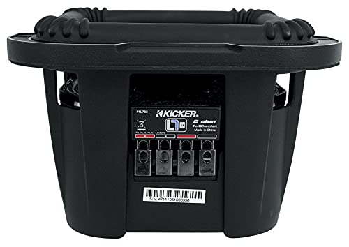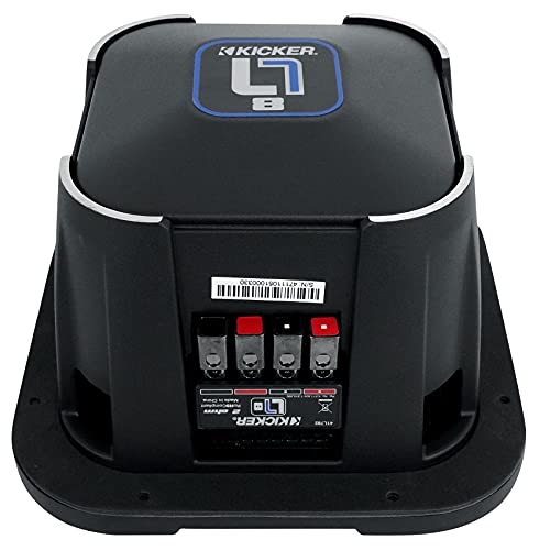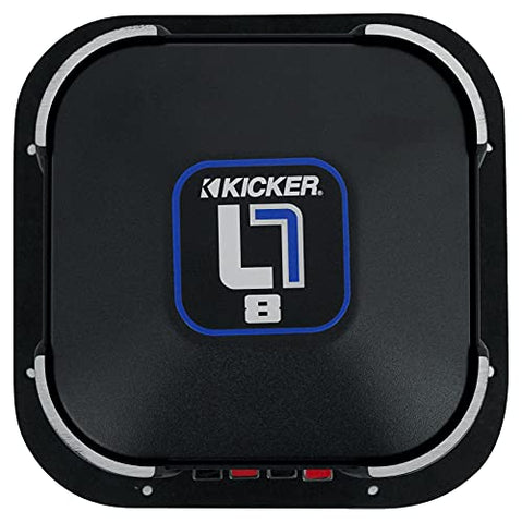 41L782 8" Q-Class L7 Subwoofer w/ Dual 2-Ohm Voice Coils The L7 stands alone as the most unique subwoofer on the market with a cone shape that is exclusively designed to produce more output. Square Matters A KICKER original their square subwoofers deliver 20% more surface area than a comparable circular sub. A bigger cone moves more air so you get more sound! Massive Motor Extreme power handling needs a motor worthy of the KICKER name. Oversized magnets and an aluminum voice coil allow every drop of power to get from the sub to your ears. Keep it Cool The Uniplate is a KICKER original combining the pole piece and back plate as a single seamless unit to pull damaging heat away from the sub. With heat management this advanced you get the bass you crave for as long as you crave it. Lean in the Corners Kicker's patented Santoprene corners allow your KICKER subs to play smooth distortion-free music at any volume level. Strong Suspension Kicker's Blue Lace spider and ribbed surround work together to give you the best suspension for your L7. You get unparalleled accuracy and volume to feel every note - every time. The New L7 The KICKER L7 Subwoofer again reaches new heights in technology and design capturing the imaginations of 2015 CES Innovation Award judges and solidifying itself as the crown jewel among industry subwoofers. For more than a decade KICKERs square woofer earned numerous awards including several CES accolades and the 2015 version once again makes distinctive improvements on its way to another honor. What's in the Box: One 41L782 subwoofer Template Owner's manual Specifications: Rated Impedance []: 2 Fs [Hz]: 47.2 Sensitivity [1W 1m]: 82.4 Qts: 0.735 Qms: 8.828 Qes: 0.802 Re []: 6.6 Vas [ft L]: .322 9.127 Continuous Power Handling [Watts RMS]: 500 Outer Frame Dimension [in cm]: 8-13/16 22.4 Mounting Depth [in cm]: 5-7/16 13.8 Mounting Cutout [in cm]: 7-1/4 18.4 Frequency Response [Hz]: 28