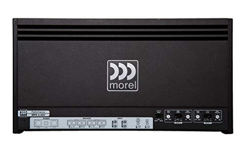 Morel built this MPS 4.400 amplifier so their high-performing car speakers would have an amp worthy enough to power them, giving you high-fidelity musical reproduction along with pure, clean power. The MPS 4.400 can send 70 watts RMS to each of your front and rear speakers, boosting musical clarity and emotional impact. You can also set this amplifier to 2-channel mode and power a couple of subs with up to 200 watts RMS each.Morel made sure that every detail of this amplifier's design would result in lower noise and higher sound quality. The amp's Class AB architecture achieves the cleanest signal with the least distortion, while balanced differential inputs reject interference. An onboard microprocessor controls the thermal management system, keeping the amp running cool and steady no matter how hard it's driven. All the connections are on one side of the amp to keep wiring neat, organized, and simple for the installer.The high- and low-pass filters and gain controls sit protected under a top panel. Their intuitive operations and functions make it easy to match the amp's output to your speakers or subs — and achieve great sound. This amplifier's modest exterior shelters high-quality electronic components that guarantee an accurate and musical performance.