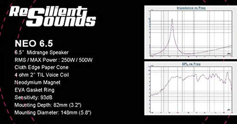 The Neo 6.5 is a high-end midrange driver capable of reproducing exceptional mid-bass while providing a smooth response at high levels of output. Resilient Sounds Speakers and subs are made for car audio enthusiasts that dare to push the limits of car audio. If you want to experience rich clear sounds at high level outputs, then Resilient Sounds mid-range driver will suit your needs of a car audio competitor.