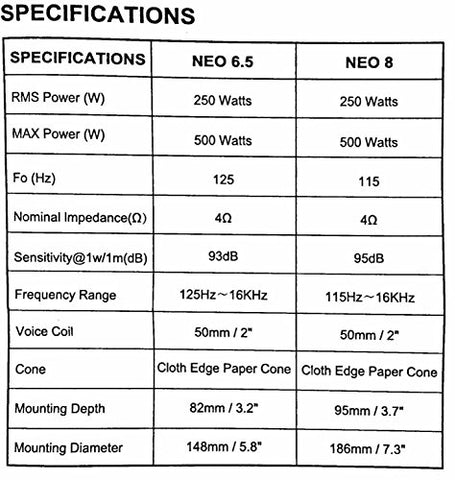 Resilient Sounds Neo 6.5 midrange 250RMS/500WATT MAX SQL