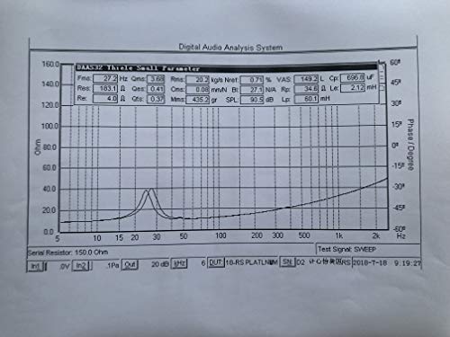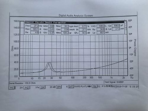 Platinum 18 2000 RMS The RS Platinum Series will speak for itself as it was designed to exceed all expectations leaving you with nothing but an enviable experience. The RS Platinum Series will be available in 12” and 15” ahd now 18inch, featuring an XL 3” 8 layer FW Aluminum VC, Quad stacked 9.25” nomex progressive spiders with dual sewn leads, and a FEA optimized triple stack motor with an aluminum shorting ring and spacers conservatively rated 2000 watts rms / 4000 watts peak. SPECS RMS: 2000 SPL: 90.6 dB FMS: 25.9 Hz BL: 19.4 Res: 187.5 Re: 2.0 Qms: 2.89 Qes: 0.38 Qts: 0.33 Rms: 24.5 kg/s Cms: 0.09 mm/N Mms: 435.2 gr Nref: 0.73% VAS: 164.0 L Rp: 14.3 Lp: 39.0 mH Cp: 1171.6 uF Le: 0.92 mH Xmax: 30 BOX HEALTHY RECOMMENDATION Every vehicles applications, equipment, tuning, wiring, ext all play a factor in making sure your woofers are playing clean signals to avoid any clipping. Our products have the reputation of taking some of the most abuse in the industry for its given power rating, but to ensure the longevity using the right air space and scoping for a clean signal will be sure to have a lasting daily resilient subwoofer. Suggested Healthy spec range. Rule of thumb lean towards smaller enclousre if clamping @ or more than conservative power. Lean towards bigger enclosure clamping below conservative power Ported enclosure 4ft-6ft tuned @35hertz with 12-16sqaure inch of port area per cubic foot.