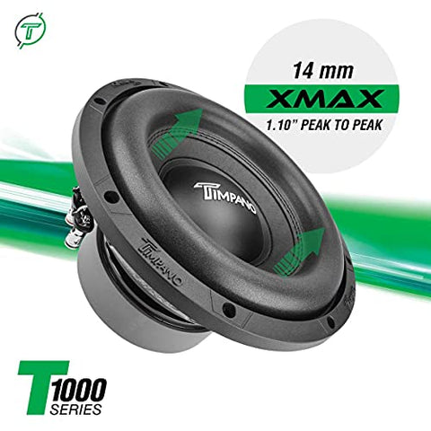 - Superior Sound: Timpano subwoofers are made of competition grade pressed paper cone with flexible high foam surround capable of 14 mm Xmax - 1.10″ peak to peak excursion before damage